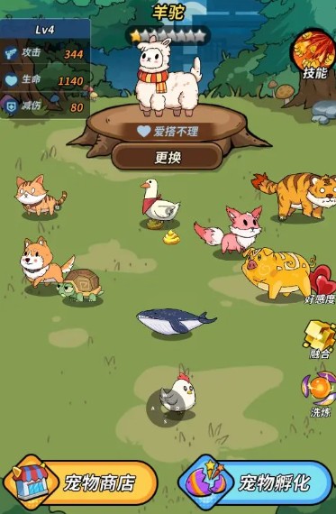 宠物的属分别有:攻击,减伤,暴击概率,移动速度,防御。每一个宠物都有不同的属性次条,宠物列表中的所有宠物的属性总和,将会叠加在出战人物身上。