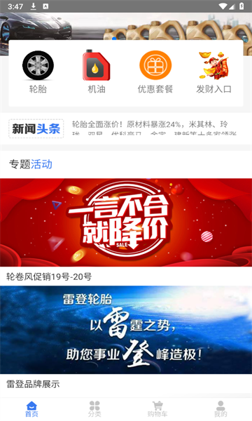 轮卷风汽配是一款专业的手机汽车配件商城软件,在软件中用户将会看到分类清晰的汽车商品配件,能够让用户快速的找到自己需要的商品,为用户提供一站式的购买服务,有需要就快来下载吧!