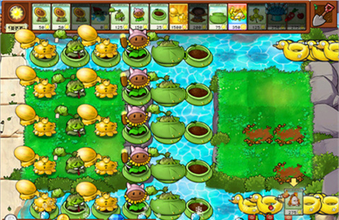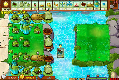 5、除草机小鬼登场,不过没有威胁,论威胁还得是橄榄巨人。不能种的地方可以用土豆炮种上土豆雷,还能防防橄榄球小鬼。促销0元冰灯真不错。