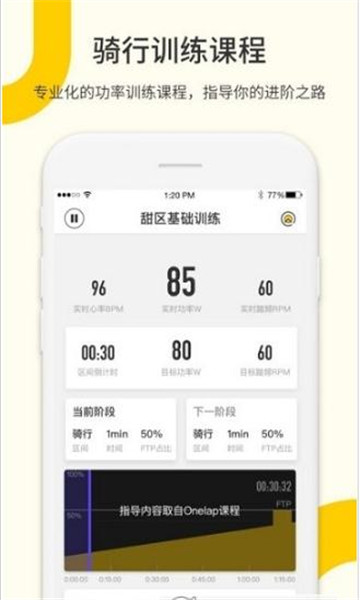 目前上线【室内骑行】运动品类,提供自由训练模式,功率训练课程,全方位记录用户产生的训练数据。