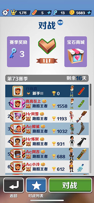 2、每一次跑酷你都可以体验到不同的快乐,去与不同的玩家比赛,掌握经验。