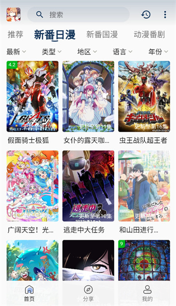 3、动漫类型丰富,搜索起来也很方便,用户可以轻松找到各种新番动画,使用体验很好。