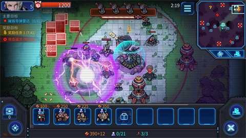 -合理搭配激光塔、无人机、空投炮塔等作战单位,保护我方主基地。