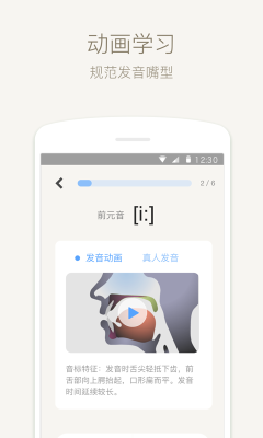 本应用让你零基础由浅入深学音标,并且通过语音评测技术帮助矫正你的发音。