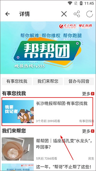 3、在【帮帮团】页面,点击页面内的【有事您找我】