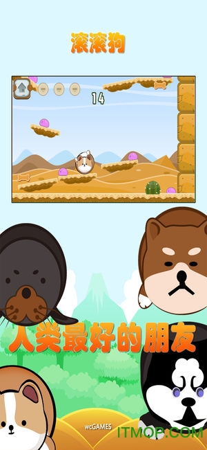 滚滚狗破解版(rollingdog)是一款跳跃游戏、过关游戏相结合的极具趣味性的小狗游戏,操作简单但魔性,特别是在空中对于方向的把握还是有点困难的,日常休闲娱乐绝对的神器,虽然界面ui确实简陋了点,推荐给喜欢厕所游戏的玩家们哟!滚滚狗内购破解版简介滚滚狗休