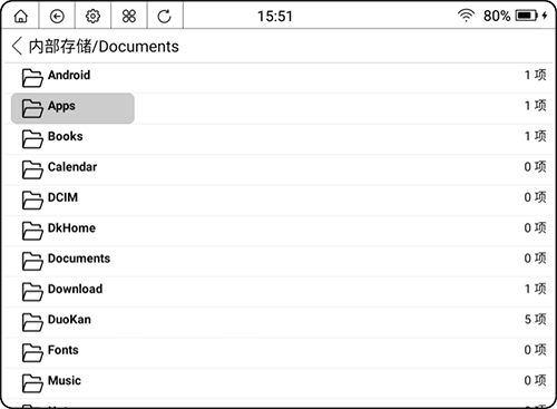 3、在设备上点击「应用」→ 「文件管理器」→ 「Apps」,找到并打开微信读书安装包,选择「安装」;