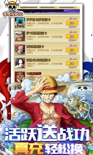 3、活跃得战功,四皇七武海伴你征战,真充好礼随意换