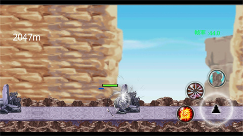 2、玩家可以自由控制人物进行跳跃,躲避前方来袭的石头,也可以击碎他们,不过会损失生命值。