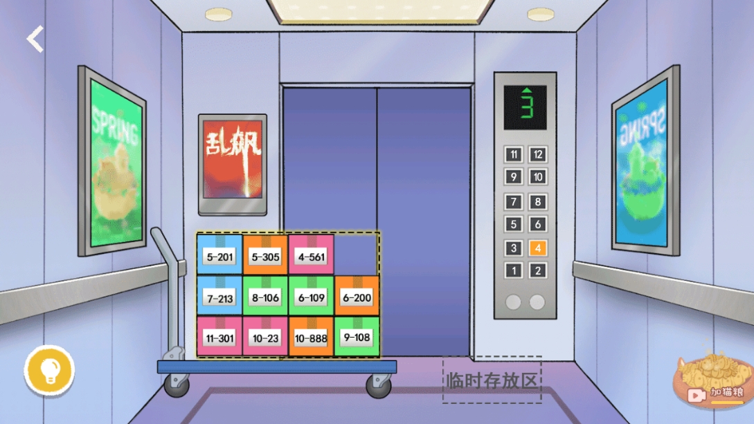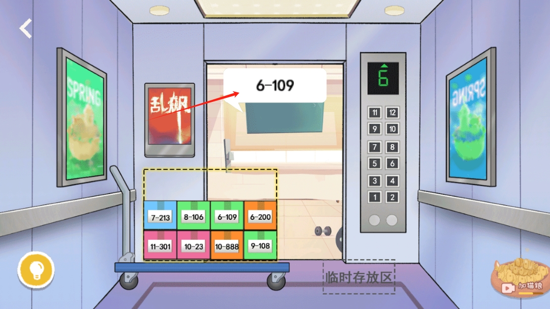 2、进入以后,玩家需要将这些快递放好,最前面的数字代表楼层,将最前面的数字由高到低依次放好,就可以进入大楼;