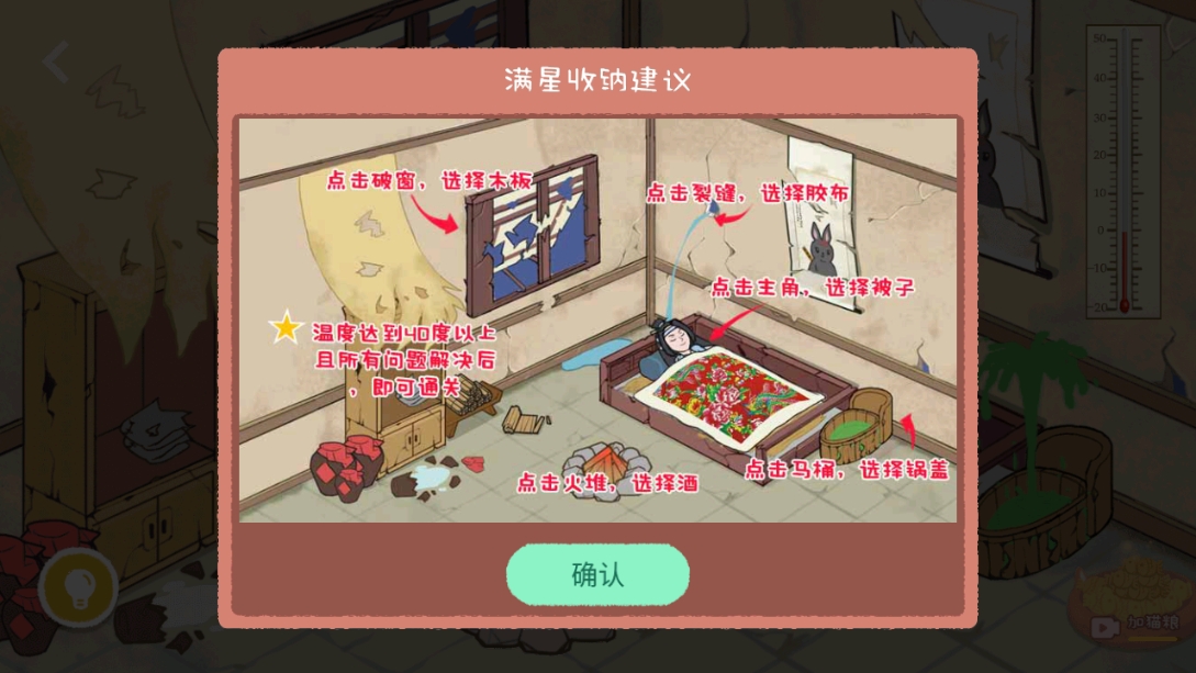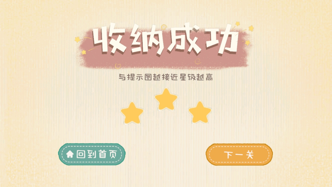 7、然后就会出现满星收纳建议,那就可以成功通关啦~