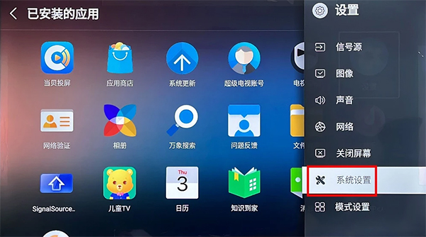 2、按遥控器上的设置键或在【应用】已安装的应用里打开设置-【系统设置】