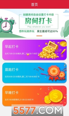 为用户带来六六打卡赚钱软件,现在就加入我们打每日打卡挑战,提供早起、运动、早睡、喝水等多种打卡赚钱活动,用户还能开设房间,自定义打卡内容,每天按时签到打卡就能瓜分现金红包,快来下载吧。