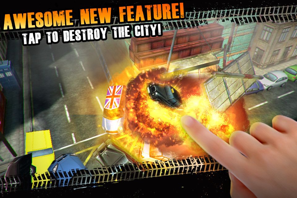 因为游戏的分值不仅仅是由通过车辆所获得分数组成,还有每个场景的任务附带的分数。比方说,游戏关卡会要求玩家撞击10辆客车,炸毁电话亭等看似奇怪的任务。一旦出现追尾撞车,玩家就可以尽情点击,把车子炸得稀巴烂。当你看到这些车子飞舞在白金汉宫、大笨钟这些知名建筑旁时,你肯定会非常爽。