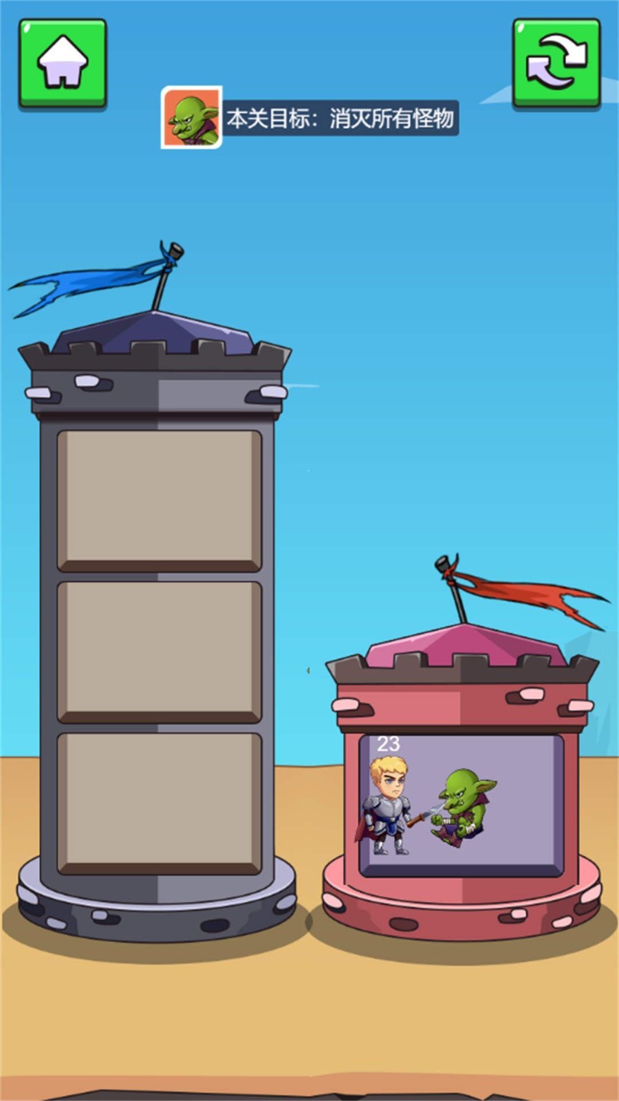 玩家需要一层一层地爬上高塔,然后与塔中的怪物进行对决,最后成功爬上塔顶击杀大BOSS,玩家在每一关遇到的怪物都不一样,需要逐步提升自己的技能和能力才能与之对抗,而且胜利后还可以升级武器装备,玩家需要控制自己的角色进行战斗,你需要通过塔中的每一层,每一层都有不同的怪物。您需要使用各种武器打败这些怪物,还可以不断提升角色等级,增强他们的实力。