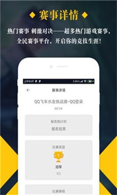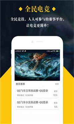 全民电竞app,以跨平台、多游戏、强社交为基础,打造全民游戏赛事平台,参与游戏任务,在家就能参与电竞比赛,赢取奖励,感受电竞魅力。