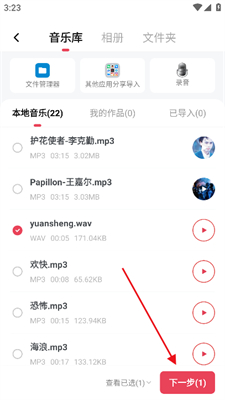 2、选择自己想要转换MP3的音频文件并点击下一步。