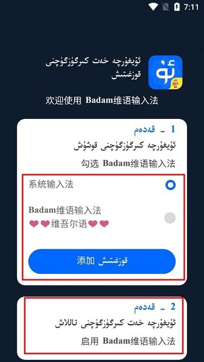 badam维语输入法app 是一款专为喜欢说维吾尔语的少数民族用户量身打造的维语输入法手机客户端,功能齐全,能够帮助维吾尔语用户更好的与朋友交流,有需要的朋友快来点击下载体验一下吧!