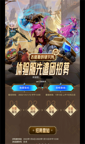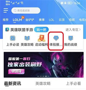 3、进入到lolm界面后,可以看到下方有个体验服资格申请,点击进入。