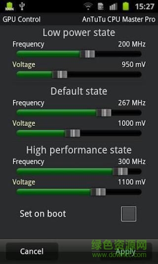 CPU大师是一个专为你的Android CPU加速软件。不论你的手机、PAD有多强大的电力,多快的速度,你都希望它变得速度更快,电力更耐用。那么CPU大师在你执行游戏、其它软体期间加快CPU速度,而又在不用的期间降低CPU速度,达到最大的省电功能。 请注意:本软体只能在ROOT过的手机、PAD上面使用,如果你不清楚ROOT的意思,可以搜寻ROOT+你手机型号来学习。 -- 加快CPU速度。 -- 节省电力(降低CPU频率)