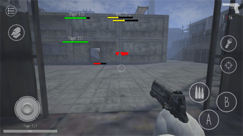 2、当满员后,就可以开始游戏了;左方是控制人物的移动,而右边则是攻击、瞄准、跳跃等按钮。