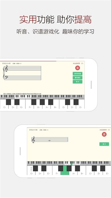 钢琴谱大全,零基础学习弹钢琴,娱乐和实用相互结合的游戏化听声音识别曲谱的功能,帮助你提高自己的钢琴水平,让弹琴趣味化,海量曲谱收录在这里,按照系统给出的按键提示,就算你不识五线谱依旧可享受弹钢琴的乐趣。