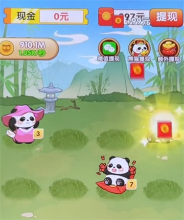 合成赚钱:玩家通过不断合成熊猫,提升熊猫等级,获得越来越高的红包奖励。