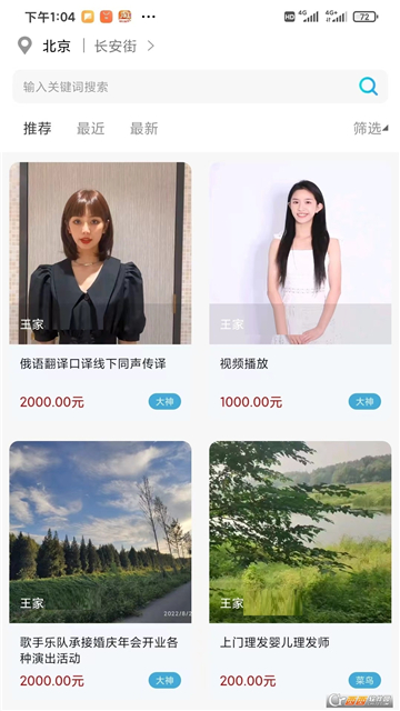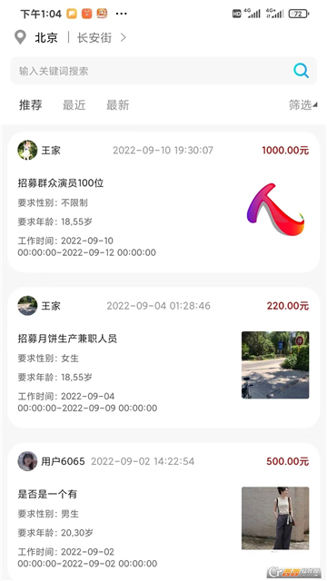2.用户可以在平台上按照自己的关键字找到自己希望的工作内容。