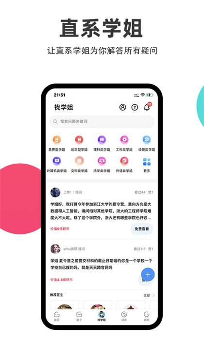 保研通app是一款手机保研学习软件。软件中含有大量与保研相关的信息资讯,用户可以在这里获取到大量自己对于保研所需要的信息,用户也可以在这里与学姐和学长们进行保研经验方面的交流,从而让自己在保研方面能够有更多的把握和信心,非常适合准备考研的用户们,有