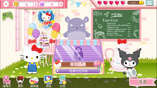 hellokitty梦幻咖啡厅是一款hellokitty主题的咖啡厅养成游戏,游戏采用了非常梦幻的少女粉的色彩元素打造,非常可爱养眼的hellokitty咖啡厅如梦似幻,游戏中玩家将扮演店主凯蒂猫开始奇幻的经营生涯,期间你可以雇用超过30个可使用的三丽鸥角色