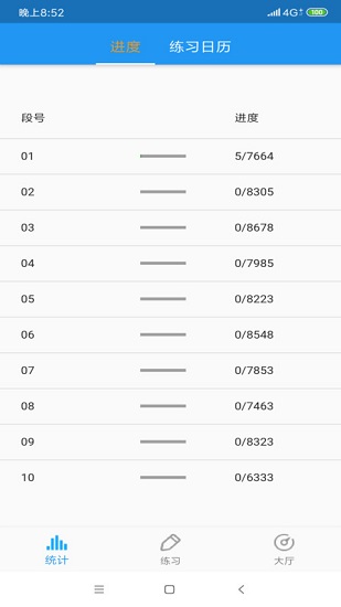 3、每个句子可以依次精听,也可反复精听,可在练习页中可进行设置,统计信息中可以统计每天学习的句子数目。