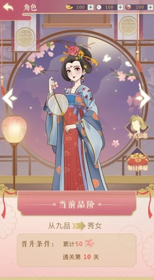 根据游戏玩法技巧,帮助角色改变华丽的衣服,参与后宫斗争,成为后宫最高的负责人才能安全的生活。