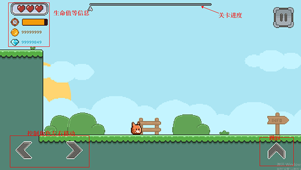 5、我们可以通过左下角的方向键控制角色移动,右下方为跳跃键,