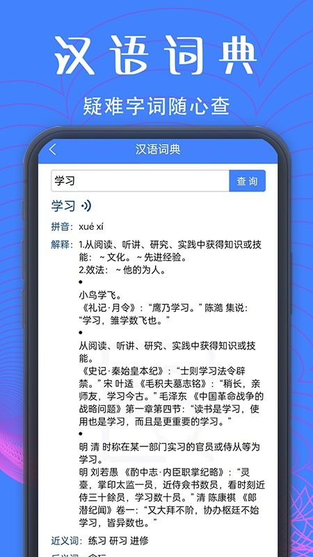 《国际中文学习词典》appv1.0安卓版是一款专门为中文学习者打造的手机应用程序,旨在帮助用户更加便捷地学习和掌握中文词汇。该应用程序由一支经验丰富的团队开发,汇集了大量的中文词汇和例句,以及丰富的学习功能,为用户提供了全方位的学习体验。软件特色:1,汇