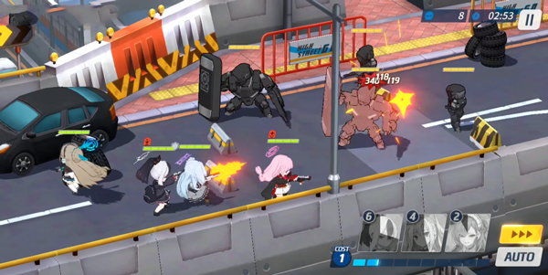 7.进入对战界面,我们可以通过滑动屏幕控制角色移动,右下角的【AUTO】按钮可以切换自动和手动作战,