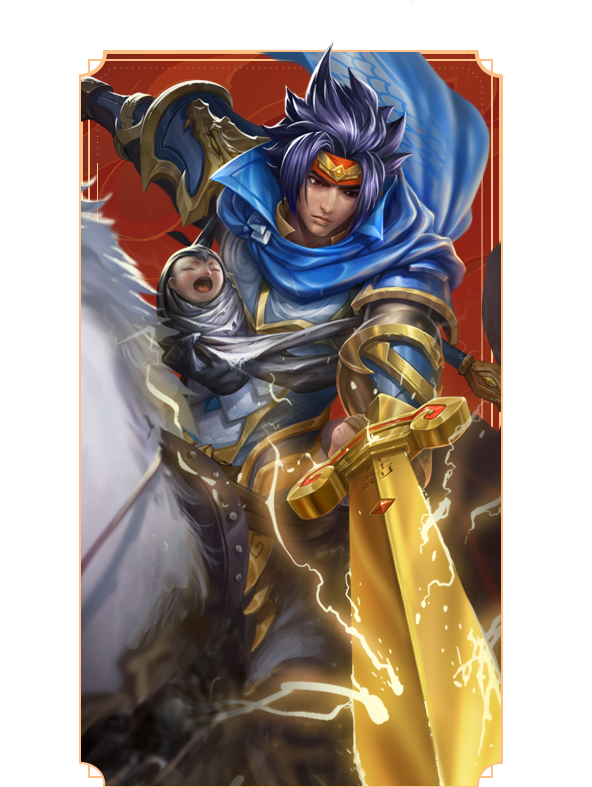 长坂坡,曹军如潮涌来,常山赵云怀抱婴儿持枪杀出。赵云疲惫之际,曹将夏侯恩飞马持刀而至,欲擒之。只见赵云奋起神威只一合将其挑落马下,夺得宝剑“青釭剑”,赵云被剑气激起万丈雄心,立刻精神百倍。他仗剑提枪冲向曹军,卷起满天尘土,如白色巨龙怒奔。无数曹军被其气势所震,五十几名大将丧命其手。自此,曹军闻长坂坡赵云之名,无不胆战心惊。