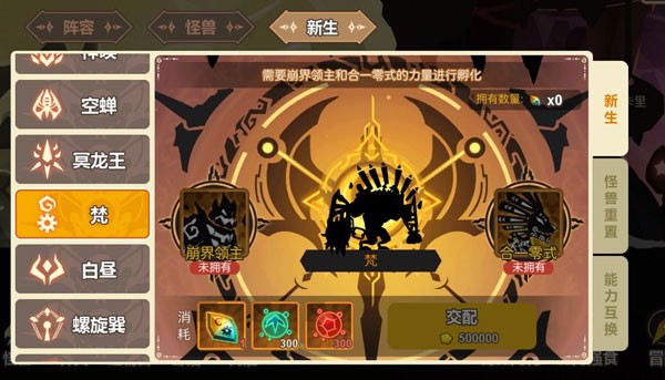 3、怪兽养成和带分支的进化,还可以通过交配孵化出隐藏的怪兽。