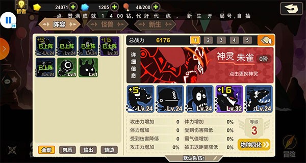 而我选择的这些怪,都是可以做三幻神用的到的怪,列如,合一零式=梵,钢铁=冥龙,圣光=白昼,且这3个怪本身的技能就跟三幻神很相似,封印技能,领域,加血,所以之前的阵容,可以理解为,简易版国家队。