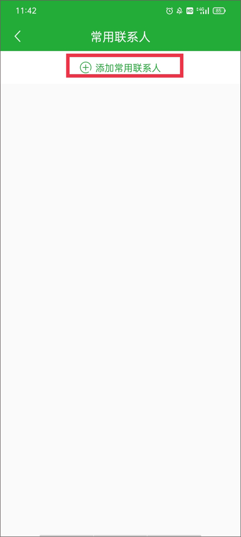 2、这个常用联系人界面会显示你之前添加的所有常用联系人信息列表,点击红色框框的“+添加常用联系人”按钮。