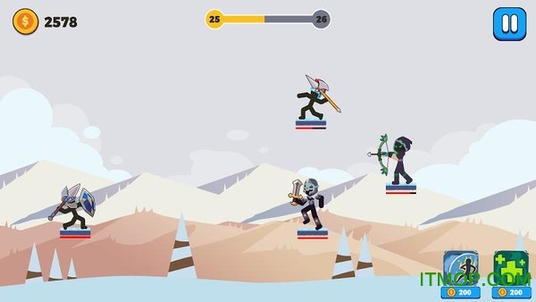 火柴人弓箭手传奇 操作十分简单,控制火柴人进行瞄准和投掷,与大量敌人进行战斗,魔性动画效果和简约的卡通画风惹人喜爱,不断完成关卡还能解锁更多武器,挑战高分排行榜吧。