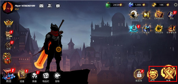 4、下图展现是详细的操作界面,你将操作左侧的影子战士来进行战斗。