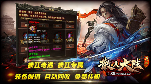 2、【关于奇遇】:上线后每个人打怪都有一定的机率触发奇遇机率,触发奇遇后可暴出神秘地图卷,随机必暴出一件专属装备,稀有专属价值数千上万。