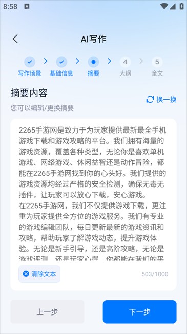 5.根据需要编辑大纲内容,完成编辑后点击“生成全文”