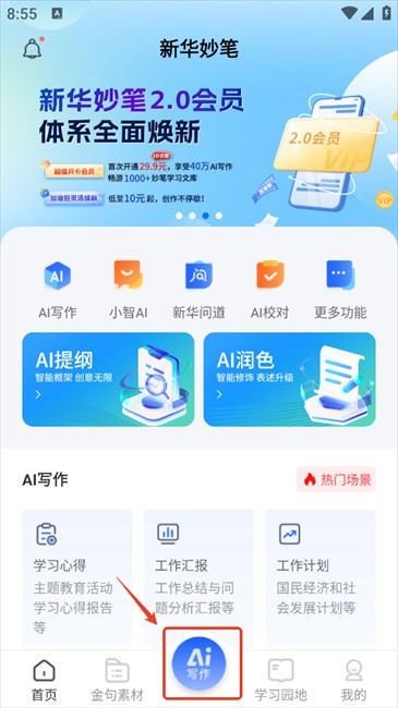 新华妙笔,一款功能强大且实用的ai智能写作助手。软件基于强大的ai技术,提供给用户AI写作和自动生成、AI续写和校对纠错、资料详实和权威资料等辅助功能,并且内置多种法定公文和应用模版,用户可以根据自己的需求选择使用。同时软件还提供了学习园地板块内容,用户可以学习到非常多的知识。欢迎有需要的小伙伴们前来下载使用!