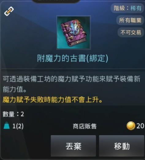 附魔建议先强1就好,很珍贵不好取得,强2机率很低,我武器强2爆3本,可以考虑储值礼满600 有10 本,足够附魔很多件。