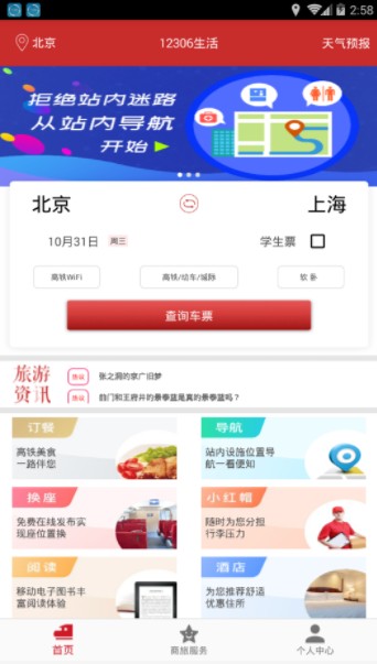 铁路纵横app是一款方便好用的铁路出行应用,为您提供了各项便捷服务。可极速选票,在线换座,餐品订购等。使您畅快出行。经常铁路出行的朋友快来下载体验吧。