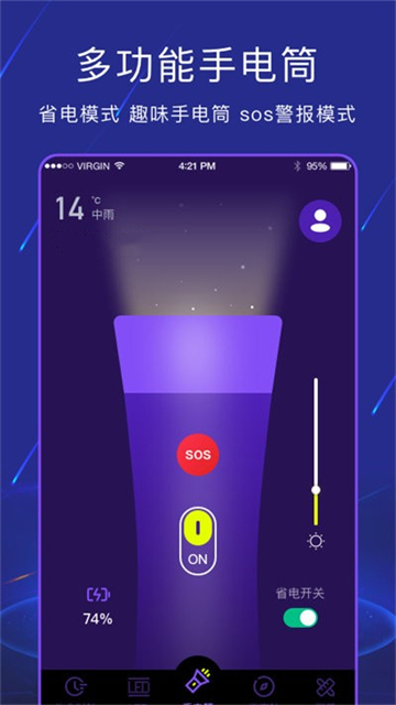 3.在打开手电筒的瞬间,也能够为用户提供天气预报的指数。