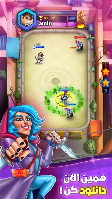 2.指尖清除屏幕就可以在不同的场地发挥角色的技能,成为真正的射击大师。
