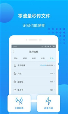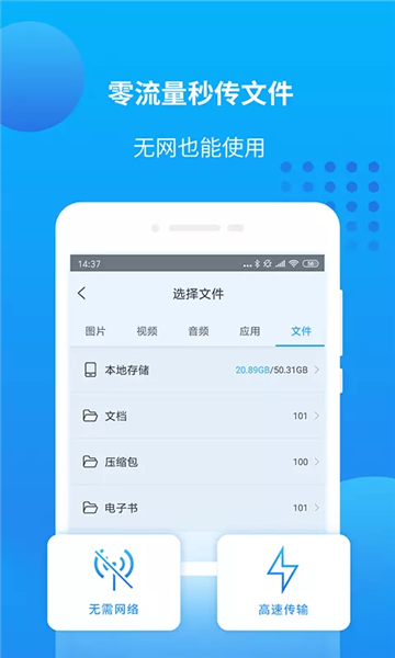 零流量秒传文件,无网也能使用。