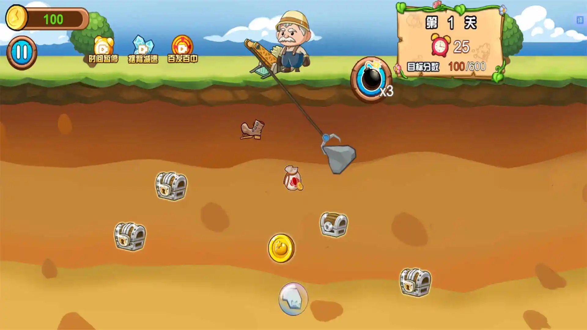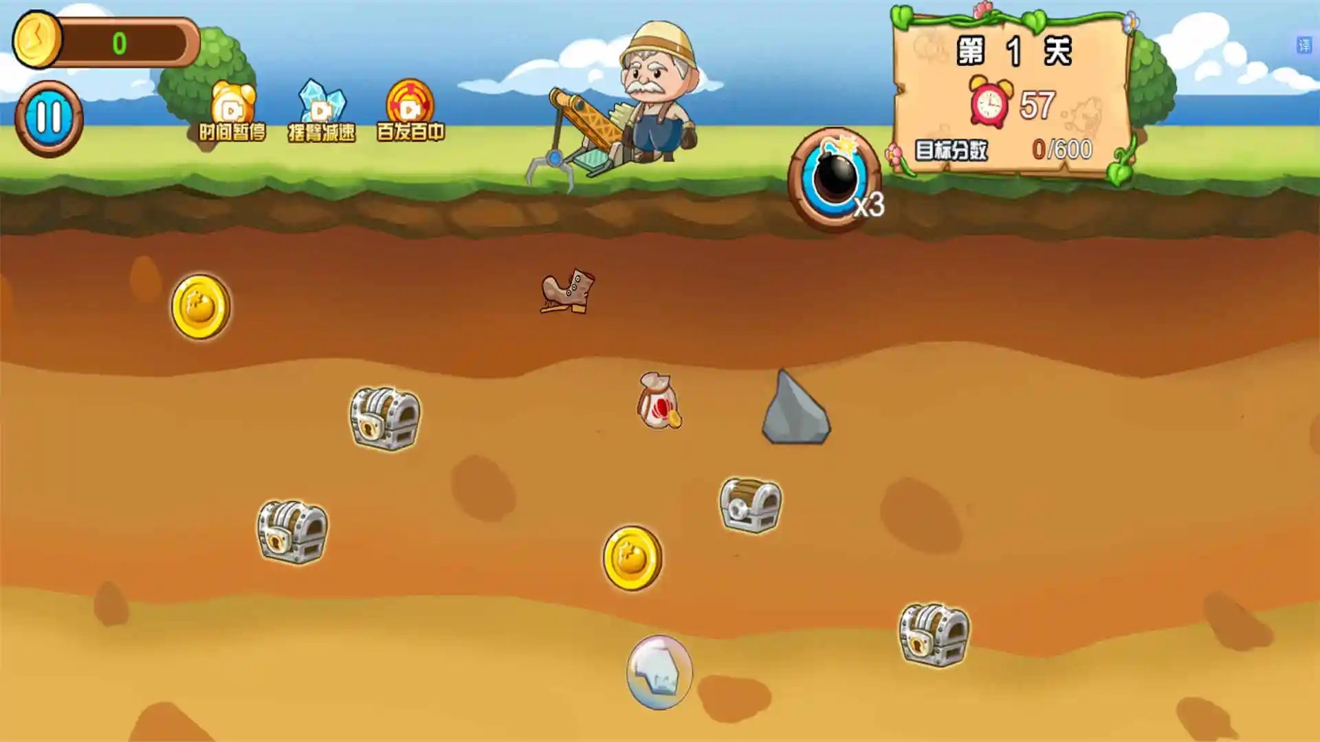 2、游戏中有大量的金矿,挖掘它们可以获取大量的分数和奖励。